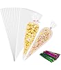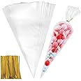This item: Cone Bag - 100 Pack Clear Cello Treat Bags 7 by 15 Inch Triangle Goody Bags with Twist Ties for Candies, Cookies (Large)