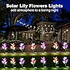- 💐Beautiful Solar Flower Light: The solar garden lights include 4 realistic lily bouquets which adopt high-quality soft fabric materials and vivid dragonflies and butterflies, including 1 purple with dragonfly, 1 purple with butterfly, 1 red with dragonfly, and 1 red with butterfly, all in gorgeous colors. With a total of 12 lovely lilies, adjustable stems and leaves, our solar outdoor lights can create a beautiful, warm and romantic atmosphere for your garden decoration.
