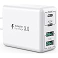 - 【Multiport Charging】: The charger block has Dual USB-C ports and Dual USB-A ports. Allow users to charge phone, tablet and headphones simultaneously to minimize waiting time. It’s also a great space saver instead of taking up 4 wall outlet ports. The best replacement for your original usb charger.