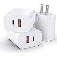 3 Pack USB C Charger Block, 20W Dual Port PD+QC Power Wall Adapter, Quick Fast Charging Plug Cube for iPhone 17/16/15/14/13/12/11/Pro Max/XS/XR/X, Galaxy S24/S23/S22/ LG and More
