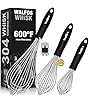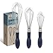 - ✅ 3-PIECE LARGE, MEDIUM AND SMALL WHISK SET: Our three manual beaters measure 11.5 inches, 10 inches, and 9 inches respectively, each having silicone whisk handles and stainless steel mixing wires.