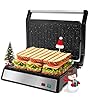 • Chefman Electric Panini Press Grill and Gourmet Sandwich Maker w/ Non-Stick Coated Plates, Opens 180 Degrees to Fit Any Type or Size Food, Dishwasher Safe Removable Drip Tray, Stainless Steel/Black