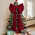 Christmas Tree Topper Bow, 24x102inch Extra Large Red Velvet Bows for Home Christmas Tree Toppers Wreath for Wall Room Party Holiday Decor Supplies