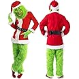 Christmas Green Grich Monster Costume for Men 7 PCS Deluxe Furry Adult Santa Suit Xmas Holiday Outfit Set