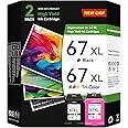 67XL Ink Cartridges Black/Color Combo Pack Compatible for HP Ink 67 67XL Printer Ink for HP 67 Fit for DeskJet 4155e 2855e 2755e 2700 2700e 2800e 4100 4255e 2734e Envy 6055e 6455e 6000 6400 Printer