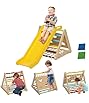 - [Kids indoor climber] The Montessori climbing set for kids has 3 funtions. Two double-sided boards: one side can be used as slide and another can be a climbing board; the centre holder can be turned into a rocking chair. Kids can enjoy multiple gaming experience in this toy set.