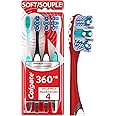 Colgate Advanced 360 Soft Full Size Toothbrush (4 Pack) with Soft Bristles - Colgate Toothbrush for a Whiter Smile, Ergonomic Handle, Cheek and Tongue Cleaner with Spiral Bristles