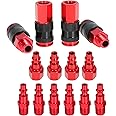 Product Summary: Connect Air Fittings Set, 1/4" Npt Air Coupler and Plug Kit, Air Quick Connector Male and Female, Pack of 14 (Red Aluminum)