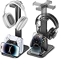 - 【Space-Saving Controller Stand with Headset Holder】This headphone stand for desk combines style with practicality, offering a tall and compact solution for keeping your gaming headphone, controller and phone organized and accessible. The game controller holder helps keep your desk organized and gives your gaming setup a cleaner look. Overall, it's an excellent product for the price - definitely worth it if you want a reliable and solid headphone and controller stand with phone holder.