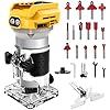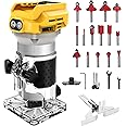 Router Tool Cordless Wood Palm Router Tool Compatible with Dewalt 20V Battery,21V 800W Brushless Handheld Palm Routers for Woodworking Hand Edge Trimmer with 15 PCS 1/4" Router Bits Set (No Battery)