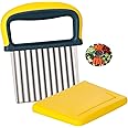 Crinkle Cutter Wavy Blade Chips Cutter French Fry Slicer Potato Carrot Chipper Vegetable Crinkle Knife Stainless Steel Wavy Chopper Kitchen Cutting Tool, Yellow