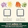 - Versatility: Create uniform dices and long cuts of onions, potatoes, pepper, apples, carrots, cucumbers, and more with interchangeable large and small stainless steel blade grids.