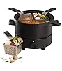 - FUNCTIONAL: This 3-quart capacity 1000-watt electric fondue set is suitable for chocolate, cheese, broth and or oil