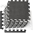 DEAYOU 16 Tiles Interlocking Foam Mat Floor Tiles, 0.4" Thickness EVA Foam Puzzle Mat with Borders, Soft Protective Exercise Padding Mats for Fitness, Children, Play, Gym, 12" x 12", Black and White