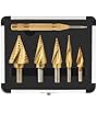 • DOVAMAN 5PCS Step Drill Bit, HSS Step Drill, Titanium-Coated, Automatic Center Punch, 118° X-Shaped Split Tip, w/Aluminum Case, Step Drill Bits for Metal, Wood & Plastic - STD06A