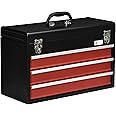 Product Summary: DURHAND 20" Portable Metal Tool Box with Metal Latch Closure, 3 Drawer Lockable Tool Chest with Ball-bearing Slider for Garage, Household and Warehouse, Red