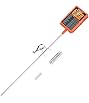 These thermometers are ideal for laboratory, field, and process measurements. Use to quickly verify temperature. Typical response time is 30 seconds for 99 percent of new reading. Thermometers have a 304 stainless steel penetration stem. All models include a protective case with pocket clip and a battery. Thermometer has an 8 or 11.5 inch long SS stem, °>F/°>C switchable ranges, one-second display update in Celsius scale, and ten-second display update in Fahrenheit scale. Use on/off button to conserve battery life.