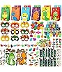 - 10 PACK GIFT BAGS STUFFERS FOR KIDS PARTY FAVORS: 10 Pull Back Mini Dinosaur Monster Truck Car Toys, 10 Stretchy String Fidget Sensory Toys, 10 Resin Dinosaur Figures . 10 Small Hatching Dino Eggs, 60 Cute Dinosaur Stickers Pack,10 Make A Dinosaur Face Stickers,10 Dino Tattoo Stickers,10 Paper Goody Bags, 10 Loot Bag Thanks Stickers.