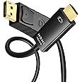 4K DisplayPort to HDMI Cable 6FT, (4K@30Hz,2K@60Hz,1080P@120Hz) Uni-Direction DP (Source) to HDMI (Display) 1.4 Cable Compatible with Desktop,Dell,Lenovo,ThinkPad,HP,AMD,NVIDIA and More