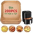 Disposable Air Fryer Liners, 200 PCS 9-Inch Square Air Fryer Paper, Microwave Baking Food Grade Baking Sheets for 5-7 Liter Air Fryer