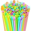 Product Summary: Disposable Snow Cone Spoon Straws Plastic Spoon Drinking Straws, Assorted Colors,100 Pack