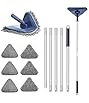 Wall Mop Cleaner Long Handle 80 inches, 180° Folding Ceiling Washer Scrubber and Squeegee, Triangle Baseboard Cleaning Tool Duster with 6 Microfiber Chenille Pads for Painted Walls Window Floor