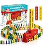 - CREATIVE LEARNING TOY : Dominoes set Included 1000 Pieces colorful dominoes race game. Children can set them up all in a row, and then push one of them, it will have a chain of effect of the dominoes tumbling over like a race. You also can watch the dominoes videos on Youtube and figure out how is work, open your mind of creativity, patience and imagination, as you are constantly building designs to knock down.