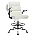 • Drafting Chair Tall Office Chair with Padded Flip-up Armrests Executive Ergonomic Computer Standing Desk Chair with Comfortable Leather Backrest and Adjustable Footrest Ring(White)