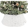 ELYKEN 13 Inch Mini Christmas Tree Collar, Cotton Rope Wove Tree Skirt for Artificial Trees, Rustic Farmhouse Wicker Tree Base Cover with Cord Cut-Out for Holiday Home Decor