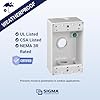 Product Summary: Sigma Engineered Solutions 14250WH Metal Electrical Outlet Box, Weatherproof, Easy Mount Plug and Receptacle Protector, White, (3) 1/2-Inch Holes, 1 Gang Box