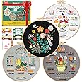 Embroidery Kit for Beginners, 4 Pack Cross Stitch Kits for Adults with Stamped Patterns Hoop Threads Needles, Step-by-Step Video Learn 31 Stitches, Hand Embroider Crafts DIY Needlepoint Sewing Gift