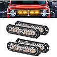 Amber Led Grille Lights for Trucks, Upgraded Waterproof, 12 Led Emergency Surface Mount Grill Strobe Light, 4PC Pack Mini Warning Flashing Bar for Dodge Ram Ford F150 F250 F350 Toyota Tacoma Truck (CB-02-Y)
