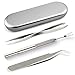 FEPITO 4 Pcs Stainless Steel Tick Remover Tool Set Pet Dogs Cats Ticks Remover Kit Including 1 PCS Tick Removal Tweezers 1 PCS Sharp Rake and 1 PCS Two Clips
