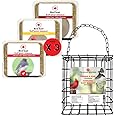 Bird Suet Cage Feeder with 3 Mixed Flavor Suet Cakes, Made in Canada