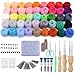 - Complete Needle Felting Kit: This needle felting kit includes everything you need to start your felting journey: 45 vibrant wool roving colors, 80 felting needles (20 each in XS, S, M and L), 20 plastic eyes, 10 plastic noses, 10 colorful rope chains, 3 wooden handle, finger guards, a yarn cutter, an awl, a needle felting pad, a transparent storage bag and other accessories.