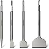 SDS Chisel Set, Firecore 4pcs Tile Removal Chisel Bits for SDS Plus Rotary Hammer Drill Attachments, Alloy Steel Shovel for Demolition Chipping Grooving Scaling Removing Cement Thinset Mortar Vinyl