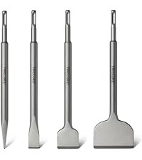 - All-In-One SDS Plus Chisel Set: This 4 piece sds chisel set includes 1 point chisel bit 10" long, 1 flat chisel 0.8" wide by 10 inch long, 1 scaling chisel bit 1.6” wide by 10" long, and 1 tile chisel bit 3” wide by 10" long.