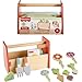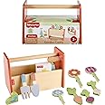 Fisher-Price Wood Pretend Play Toy Tiny Garden Caddy, 12-Piece Set with Wooden Tools & Plants for Preschool Kids Ages 3+ Years