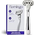 This item: Flamingo Razors for Women, 1 Women's Razor Handle (Chrome), 5 Blade Razor for Women with Aloe and Shea Butter Glide Strips