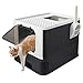This item: Foldable Cat Litter Box, Top Entry Kitty Litter Box with Lid & Scoop Extra Large Space Enclosure Toilet (Black) - LIVINGbasics
