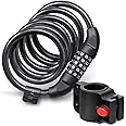 Fosmon Bike Lock Cable (1.8M/6FT), Heavy Duty 5-Digit Self Coiling Resettable Combination Code, Anti-Theft Bicycle Chain Security Lock & Mount Holder