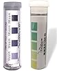 Dip a strip in the solution for a second, remove it and wait 5 to 10 seconds for the strip to develop. After this time, compare the color of the strip with the color chart provided on the bottle.