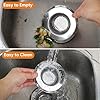 【High Quality Material】Our sink strainers are made made of high-quality and corrosion-free stainless steel resistant to rust and corrosion,.The edge is covered with anti-scratch protective film, please tear off the protective film before use.