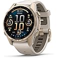 Garmin fēnix 8 – 43mm, AMOLED, Sapphire, Premium Multisport GPS Smartwatch, Long-Lasting Battery Life, Dive-Rated, Built-in LED Flashlight, Soft Gold with Dark Sandstone Band