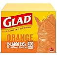 - EXTRA-LARGE ORANGE GARBAGE BAGS: Box of 20 Glad Extra-Large 135L orange garbage Bags