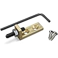 The Guitar Tremolo Stopper is a must-have accessory for guitarists using Fender and Floyd Rose-style tremolo systems. Made from high-quality brass, this tremolo stopper serves as a floating bridge stop, preventing unintended vibrato effects caused by resting your picking hand on the bridge while playing. With the Guitar Tremolo Stopper - TS1, you can control your tremolo system precisely. It allows for down-bends while preventing up-bends, ensuring a stabilized return of the whammy bar. The included Allen screw can be easily reversed, allowing you to switch back to a floating bridge setup whenever desired. Included in the package: 1 × Brass block (1.05" L x .38" W x .49" H), 1 × Allen key (2 mm), 1 × Allen screw (M4 x .70 thread, 20 mm length), 1 × Hex nut (M4 x .70 thread) and 2 × Flat head mounting screws (10 mm length). Enhance your guitar-playing experience with the Guitar Tremolo Stopper - TS1. Say goodbye to accidental vibrato effects and enjoy a more controlled performance!
