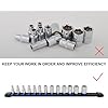 - 【Quick-Access and Portable Storage】Features non-slip grips and labeled slots for instant socket identification. Lightweight yet sturdy design allows easy portability between workshops, jobsites, or vehicles. Fits standard tool chests and rolling cabinets.With hole on each extrem, it can also mount on a wall vertically or horizontally