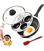 Product Summary: HENCKELS Non-Stick Cup 4 Eggs Poacher with Glass Lid, Silver, Black,