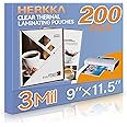 HERKKA 200 Pack Laminating Sheets, Holds 8.5 x 11 Inch Sheets, 3 Mil Clear Thermal Laminating Pouches 9 x 11.5 Inch Lamination Sheet Paper for Laminator, Round Corner Letter Size
