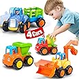 • HOLA Toys for 1 2 Year Old Boys Birthday Gifts - 4 PCS Push and Go Trucks, 4WD Friction Power Car Toddler Toys Early Educational Baby Toy 12-18 Months Christmas Easter Stocking Stuffers